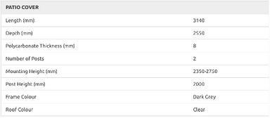 3.1m x 2.5m Patio Shelter - Aluminium Frame